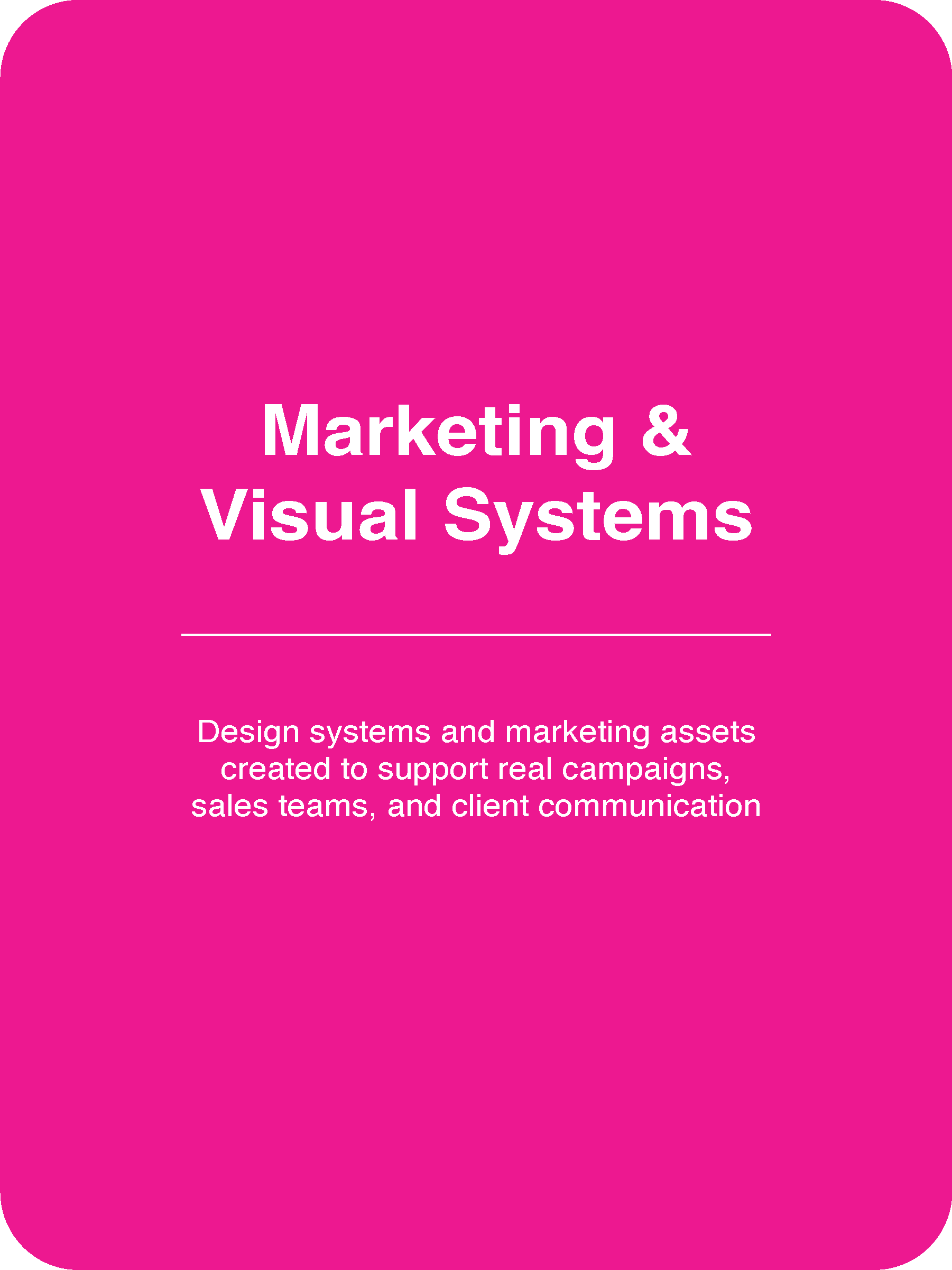 My work brings together marketing and product design through visual systems built for real-world use. Projects range from marketing and presentation assets to product and packaging design, each created to support clarity, consistency, and scale.