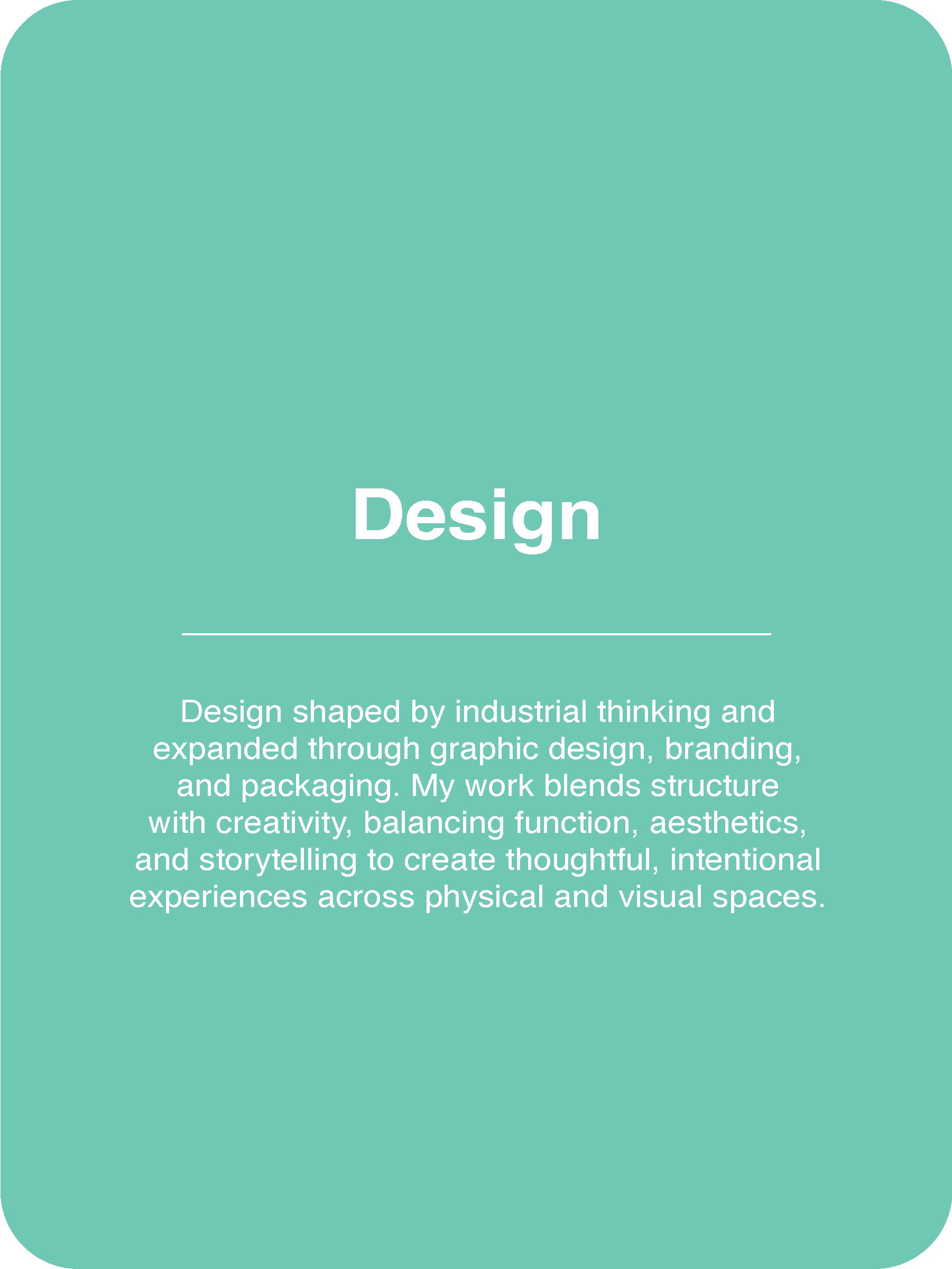 By blending industrial thinking with visual design, I create solutions that are practical, efficient, and emotionally resonant. The result is work that feels cohesive across form and graphics—where functionality meets clarity, and creativity is always supported by purpose.
